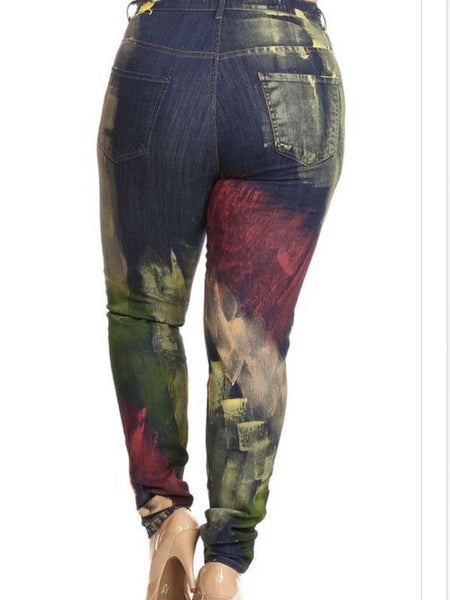 : High Rise Skinny Jeans w/ Paint Splash